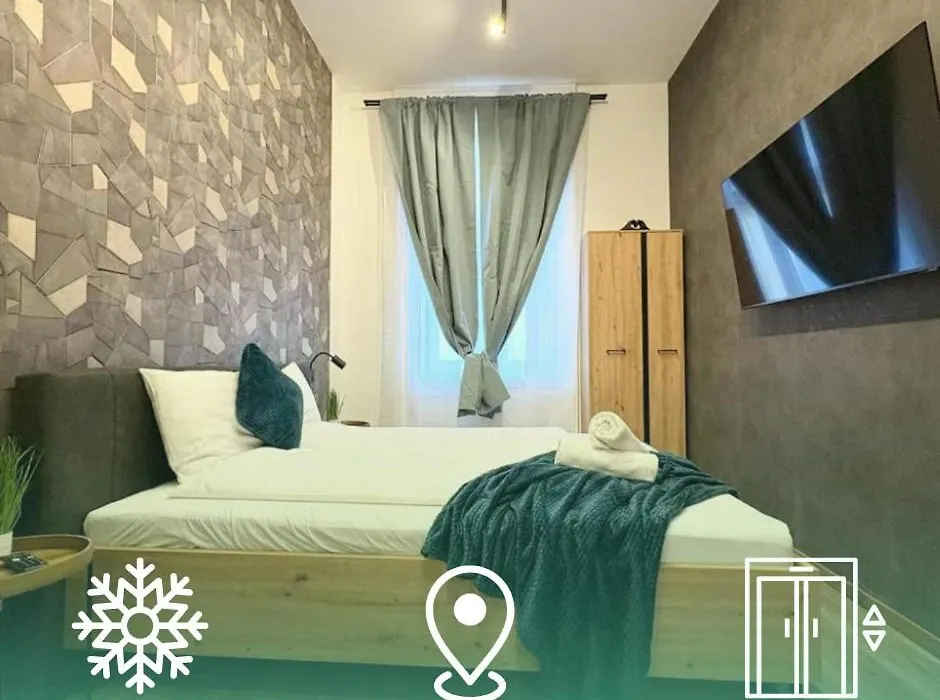 The 35 m² Easy City Access Dohany Street Home For 4 By Nw Budapest apartment is located in the 07. Erzsebetvaros district, and Bajcsy-Zsilinszky út tube station is only 350 metres away. Wi-Fi is provided for both business and leisure activities.